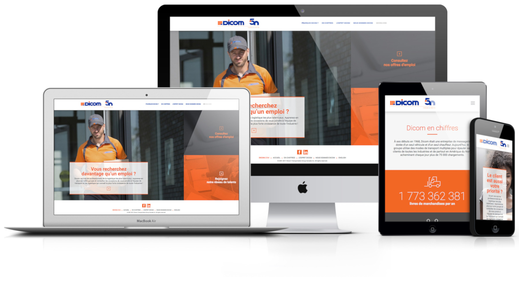 Ayant d'importants enjeux de recrutement, Dicom souhaitait améliorer sa visibilité auprès des candidats. Afin de développer son image de marque employeur, CDC a recommandé la création d'un site carrière mettant en valeur les attraits de Dicom pour les candidats potentiels. CDC s'est ensuite chargé de la réalisation du site qui a été mis en ligne en 2016.