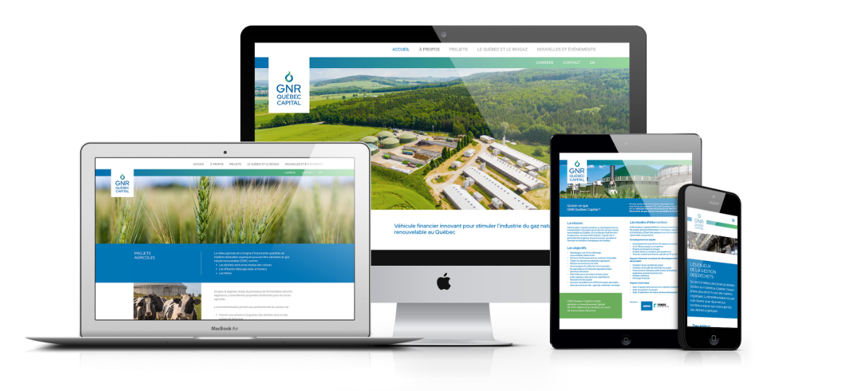 + Concevoir un site Web élégant et ergonomique qui permette d’appréhender rapidement et clairement la nature et la fonction du Fonds, les projets en cours ainsi que les enjeux liés au gaz naturel renouvelable au Québec.